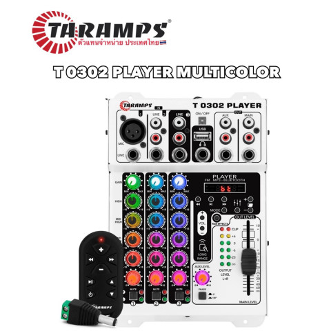 เลือก Taramps Mixer T-0302 Player MULTICOLOR เพื่อยกระดับเครื่องเสียงรถของคุณให้ทั้ง “เสียงแน่น ปรับง่าย และสวยเด่นด้วยไฟ RGB” ครบจบในตัวเดียว พร้อมความมั่นใจด้วย รับประกันศูนย์ไทย ของแท้