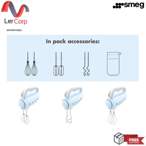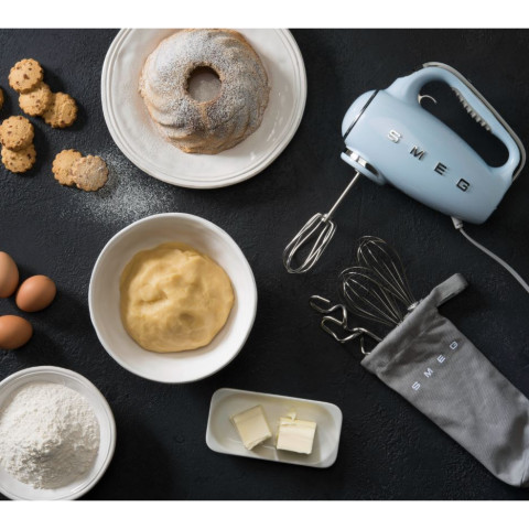 (Smeg) เครื่องผสมอาหารมือถือ สีฟ้าพาสเทล รุ่น HMF01PBEU ดีไซน์สไตล์วินเทจยุค 50’s ที่ผสานเทคโนโลยีสมัยใหม่ไว้ในตัวเดียว เหมาะสำหรับทั้งมือใหม่หัดทำขนมและเชฟสายโฮมเมดที่ต้องการความสะดวก รวดเร็ว และสวยงามบนเคาน์เตอร์ครัวของคุณ
