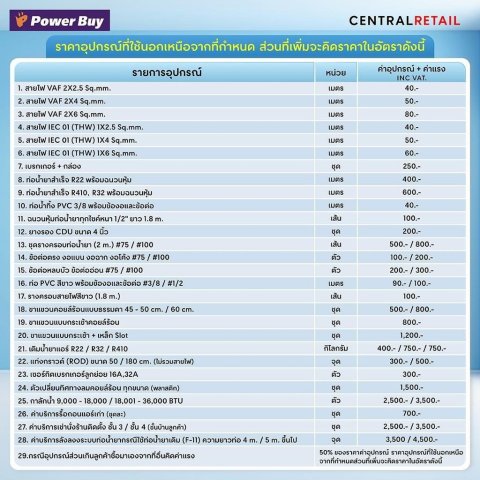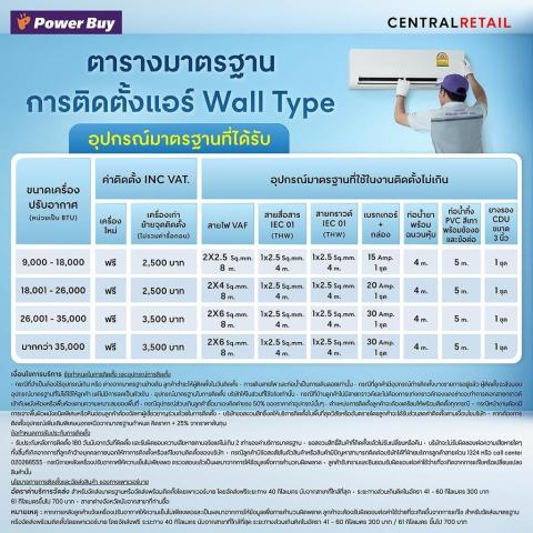ต้องใช้ตัวตัดวงจร (เบรกเกอร์) และฟิวส์มาตรฐานที่สอดคล้องกับอัตรากำลังไฟของเครื่องปรับอากาศ