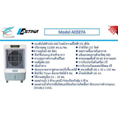 คุณสมบัติเด่นของพัดลมไอเย็น ASTINA AC027A