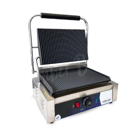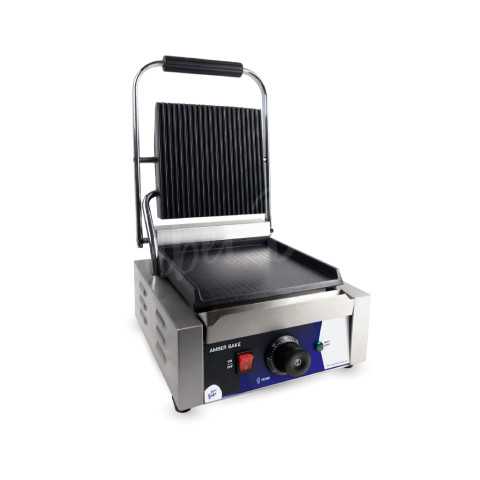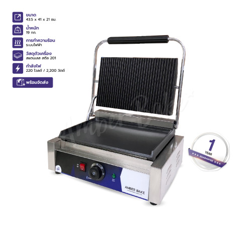 เพิ่มมาตรฐานการย่างและปิ้งแซนวิชของร้านคุณให้ก้าวสู่ระดับมืออาชีพด้วย เครื่องทำแซนวิชพานินี่ สเต็กพานินี่ (หัวเดียว) รุ่น AMB-0625 แบบหัวเดี่ยวขนาดใหญ่ ที่ออกแบบมาเพื่อการใช้งานเชิงพาณิชย์ทั้งคาเฟ่ ร้านอาหาร ฟู้ดทรัก และครัวกลาง ด้วยหน้าตาเตาที่ให้ทั้งลายย่างสวยและพื้นผิวเรียบที่สุกทั่วถึงในเครื่องเดียว