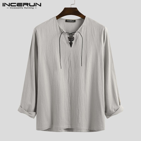 Incerun เสื้อยืดแฟชั่นผู้ชายผ้าฝ้ายแขนยาวผูกเชือกตัวนี้ คือไอเท็มที่ช่วยยกระดับลุคประจำวันของคุณให้ดูมีสไตล์มากขึ้นในทันที ทั้งเรียบ เท่ และใส่สบายในตัวเดียว