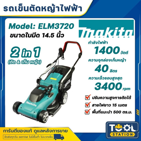 จัดการสนามหญ้าให้สวยเนี้ยบได้ง่ายและรวดเร็วด้วย MAKITA รถเข็นตัดหญ้าไฟฟ้า รุ่น ELM3720 ขนาดใบตัด 37 ซม. กำลังมอเตอร์ 1,400 วัตต์ มาพร้อมสายไฟยาว 15 เมตร และการรับประกันศูนย์ 1 ปี เหมาะสำหรับการดูแลสนามหญ้าบ้านพักอาศัยอย่างมืออาชีพ ใช้งานง่าย ปลอดภัย และทนทาน ดีไซน์ทันสมัยรองรับการตัดหญ้าพื้นที่สูงสุดถึง 500 ตารางเมตร