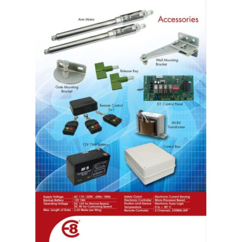 รุ่น: มอเตอร์ประตูรีโมทบานสวิง บานเฟี๊ยม รุ่นแขนยาว E8