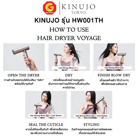 KINUJO HAIR DRYER VOYAGE คินูโจะ ไดร์เป่าผม รุ่น HW001TH ไดร์เป่าผมพกพาระดับพรีเมียมที่ออกแบบมาเพื่อสายเดินทางและคนยุคใหม่โดยเฉพาะ ใช้งานได้ทั่วโลกด้วยระบบรองรับแรงดันไฟฟ้า 100-240V พร้อมเทคโนโลยีถนอมเส้นผมแบบจัดเต็มในขนาดกะทัดรัด น้ำหนักเบา พกง่าย ใช้งานสะดวกทุกที่ ทั้งที่บ้าน ยิม ออฟฟิศ หรือทริปต่างประเทศ มาพร้อมประกันศูนย์ไทย 1 ปี มั่นใจได้ในคุณภาพและบริการหลังการขาย
