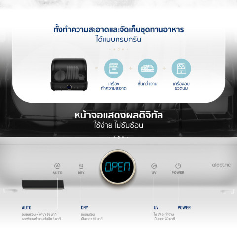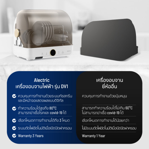 ครบทั้งฟังก์ชันอบแห้งและฆ่าเชื้อในเครื่องเดียว ช่วยประหยัดพื้นที่ ประหยัดเวลา และยกระดับความสะอาดให้กับทุกมื้ออาหารของครอบครัวคุณ เลือกใช้ Alectric เครื่องอบไฟฟ้า รุ่น DV1 เพื่อความอุ่นใจในทุกการใช้งานในครัวเรือน