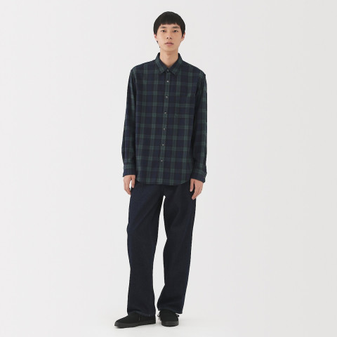 MUJI Flannel Sleeve Long Sleeve Shirt รุ่น AC4ALA5A เสื้อเชิ้ตผ้าแฟลนเนลแขนยาวสำหรับผู้ชาย ที่ให้สัมผัสนุ่ม อุ่น และสวมใส่สบาย เหมาะทั้งวันทำงาน วันพักผ่อน หรือวันที่อากาศเย็นเล็กน้อย ด้วยดีไซน์เรียบง่ายสไตล์มินิมอลแบบ MUJI แมตช์ได้ง่ายกับกางเกงยีนส์ ชิโน หรือกางเกงผ้าทรงสุภาพ
