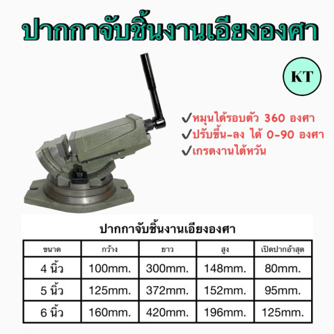 ประเภทการใช้งาน: ปากกามิลลิ่ง, ปากกาจับชิ้นงานเอียงองศา, งานจับยึดเพื่อกัด/เจาะ/แต่งชิ้นงาน