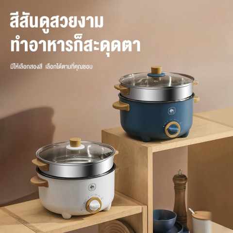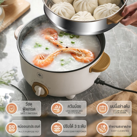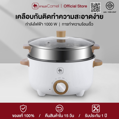 CAMEL หม้อไฟฟ้า/หม้อนึ่งไฟฟ้าอเนกประสงค์ 1000W หม้อไฟฟ้ามินิสุดคุ้มสำหรับคนชอบทำอาหารในพื้นที่จำกัด ใช้ได้ทั้ง ต้ม-นึ่งในหม้อเดียว (บนนึ่งล่างต้ม) ร้อนเร็ว กระจายความร้อนสม่ำเสมอ พร้อมเคลือบสารกันติดฟู้ดเกรด ช่วยให้ล้างทำความสะอาดง่าย เหมาะทั้งหอพัก คอนโด ออฟฟิศ หรือใช้เป็นหม้อเสริมในบ้าน