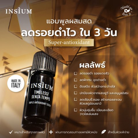 ชื่อสินค้า: INSIUM (อินซิอุม) Timeless เซรั่มบำรุงผิวหน้า ลดเลือนจุดด่างดำ และบำรุงผิว