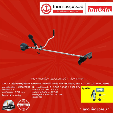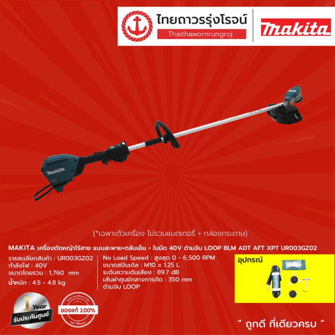 MAKITA BLM UR002 / UR003 เครื่องตัดหญ้าไร้สาย 40V (เครื่องเปล่า) รุ่น UR002GZ02 (ด้ามจับตัวยู) / UR003GZ02 (ด้ามจับแบบ LOOP) มาพร้อมชุดใช้งานแบบครบมือทั้ง สายสะพาย + ตลับเอ็น + ใบมีด เหมาะสำหรับงานเล็มหญ้าในบ้าน สวน หรือพื้นที่อาคารสำนักงาน ให้พลังตัดลื่นไหลด้วยมอเตอร์ไร้แปรงถ่าน กำลังสูงสุด 550W ทำงานคล่องตัว ไม่ต้องง้อสายไฟ ใช้งานได้ต่อเนื่องและมั่นใจในความทนทานตามมาตรฐาน MAKITA