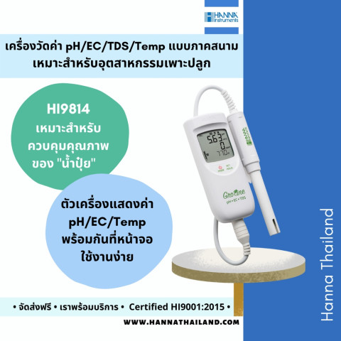 เครื่องวัดค่ากรด-ด่าง pH/EC/TDS/Temp ในน้ำ 🔥4 in 1🔥 แบบภาคสนาม สำหรับผักไฮโดรโปรนิกส์ รุ่น HI9814 (Hanna)