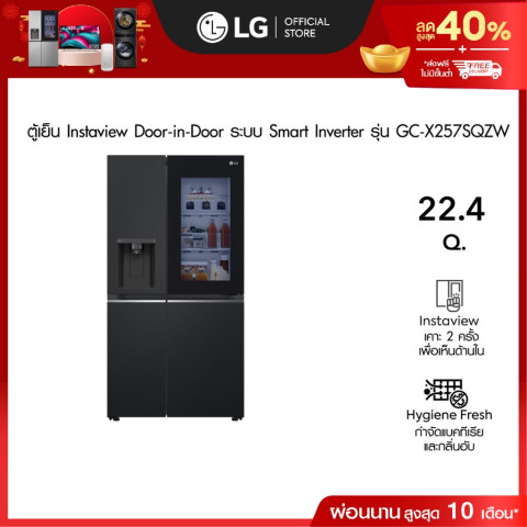 LG ตู้เย็น Instaview Door-in-Door รุ่น GC-X257SQZW ขนาด 22.4 คิว ตู้เย็นพรีเมียมที่รวมความจุขนาดใหญ่ ดีไซน์ล้ำ และความสะดวกแบบสมาร์ทไว้ในเครื่องเดียว เพียงเคาะที่บาน InstaView ก็สามารถมองเห็นของด้านในได้ทันที ช่วยลดการเปิดประตูบ่อย รักษาความเย็นและความสดของอาหารได้ดียิ่งขึ้น พร้อมเทคโนโลยี Smart Inverter Compressor ที่ทำงานเงียบ ประหยัดพลังงาน และมาพร้อมการควบคุมผ่าน Wi‑Fi เพิ่มความสะดวกให้ชีวิตประจำวันแบบทันสมัย
