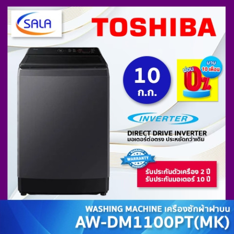 TOSHIBA เครื่องซักผ้าฝาบน 10 กก. รุ่น AW-DM1100PT(MK) มาพร้อมมอเตอร์ Direct Drive Inverter ต่อตรงเข้ากับถังซัก ให้พลังซักแรง เงียบ และทนทาน ใช้งานได้มั่นใจในทุกวัน โดดเด่นด้วยระบบคลื่นน้ำ GREATWAVES และพลังน้ำ 3 ทิศทาง ช่วยขจัดคราบได้ล้ำลึก ให้ผลลัพธ์สะอาดใกล้เคียงการซักมือ พร้อมฟังก์ชันดูแลเครื่องอย่าง I-Clean ทำความสะอาดถังอัตโนมัติ ลดกลิ่นอับและคราบสะสม