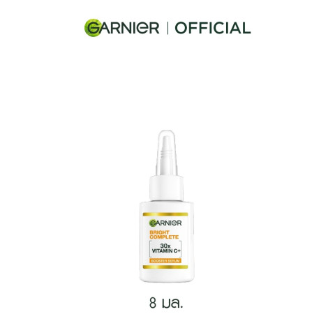 [สินค้าสมนาคุณงดจำหน่าย] การ์นิเย่ สกิน แนทเชอรัลส์ ไบรท์ คอมพลีท วิตามินซีพลัส บูสเตอร์ เซรั่ม ขนาด 8 มล. เซรั่มบูสเตอร์เข้มข้นที่ออกแบบมาเพื่อช่วยให้ผิวดูสว่าง กระจ่างใส ดูสุขภาพดี เหมาะสำหรับผู้ที่ต้องการเพิ่มความมั่นใจให้ผิวหน้าในทุกวันด้วยพลังของวิตามินซีพลัสในรูปแบบเซรั่มขนาดพกพา ใช้ง่ายและสะดวก