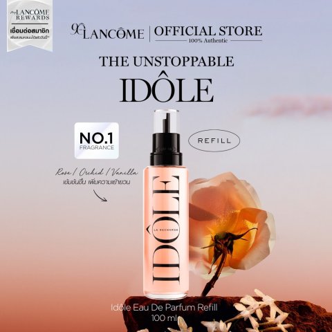 LANCOME IDOLE EDP REFILL 100ML (ขนาดรีฟิล) น้ำหอมกลิ่นดอกไม้ที่สดชื่น สะท้อนตัวตนของผู้หญิงยุคใหม่ที่เข้มแข็ง มั่นใจ และเปี่ยมพลัง พร้อมให้คุณเติมความหอมได้อย่างต่อเนื่องในรูปแบบรีฟิล ช่วยลดการใช้บรรจุภัณฑ์ใหม่และใช้งานสะดวก เติมได้ง่ายในไม่กี่ขั้นตอน