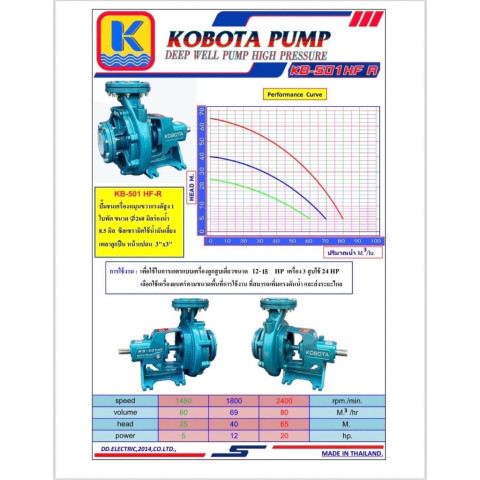 ปั๊มน้ำ KOBOTA KB-501HF หมุนขวา ปั๊มแรงดันสูง 3" x 3" หน้าแปลน 10K By JUNERY ราคา 15,000.00 บาท
