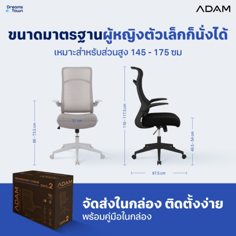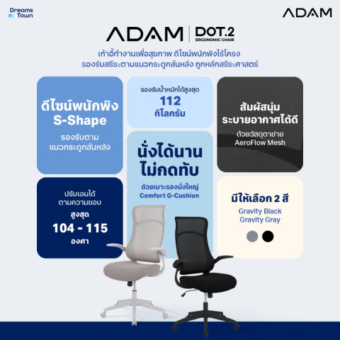 ADAM เก้าอี้ทำงานเพื่อสุขภาพ รุ่น DOT.2 ERGO CHAIR GRAVITY (สีเทา) เก้าอี้คอมดีไซน์โมเดิร์น พนักพิงไร้โครงทรงคลื่น S-Shape รองรับแนวกระดูกสันหลังตามหลักสรีระศาสตร์ นั่งทำงานนาน ๆ ได้สบาย ลดเมื่อยล้า เหมาะทั้งโฮมออฟฟิศและออฟฟิศจริง