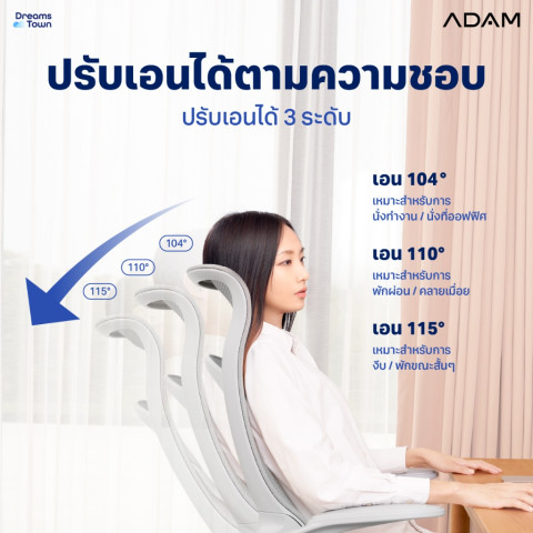 ปรับเอนได้ ช่วงองศาพนักพิงประมาณ 104–115° สำหรับพักผ่อนระหว่างวัน