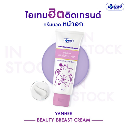 Yanhee Beauty Breast Cream (ยันฮี บิวตี้ เบรส ครีม) ขนาด 100 กรัม ครีมบำรุงสำหรับนวดผิวบริเวณทรวงอก ช่วยดูแลผิวให้แลดูเรียบเนียน นุ่มชุ่มชื้น พร้อมบำรุงด้วยสารสกัดจากกวาวเครือขาว เหมาะสำหรับผู้ที่ต้องการดูแลผิวบริเวณหน้าอกเป็นประจำ เพื่อให้ผิวดูสุขภาพดีและกระชับแลดูมีมิติยิ่งขึ้น