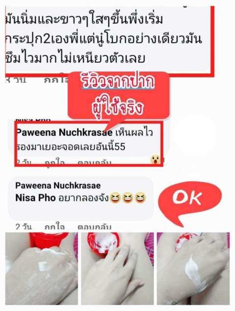 แนะนำทดสอบการแพ้ก่อนใช้จริง โดยทาบริเวณท้องแขน/หลังใบหู