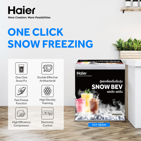HAIER ตู้แช่สำหรับทำเครื่องดื่มเกล็ดหิมะ ขนาด 5Q รุ่น HCF-SB208 ราคา 9,903.60 บาท ตู้แช่สายปาร์ตี้และร้านเครื่องดื่มที่ช่วยเปลี่ยน “ขวดธรรมดา” ให้กลายเป็นความเย็นแบบวุ้น/เกล็ดหิมะได้ง่าย ๆ ควบคุมอุณหภูมิแม่นยำด้วยแผงดิจิตอล ทำได้ตั้งแต่แช่เย็นทั่วไปไปจนถึงความเย็นจัด พร้อมจัดเก็บเป็นสัดส่วนด้วยตะกร้าและชั้นวาง ใส่ได้จุใจสูงสุดถึง 43 ขวด