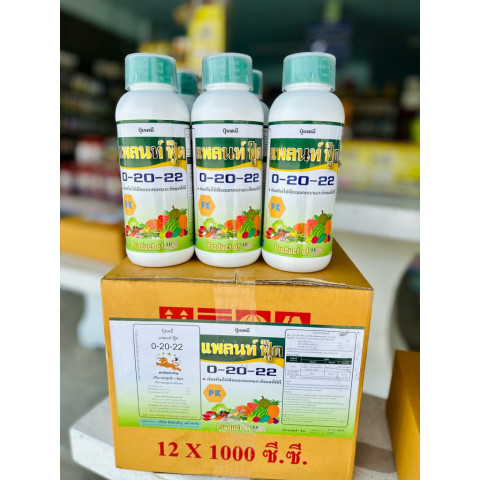 แพลนท์ ฟู๊ด 0-20-22 ปุ๋ยทางใบสูตรนำเข้าจากประเทศสหรัฐอเมริกา ขนาด 1 ลิตร บรรจุ 12 ขวด/ลัง เหมาะสำหรับเกษตรกรและผู้ปลูกพืชที่ต้องการเร่งการออกดอก เพิ่มโอกาสติดผล และช่วยให้พืชดูดซึมธาตุอาหารได้อย่างรวดเร็ว เพื่อให้ได้ผลผลิตที่สม่ำเสมอและคุณภาพดี