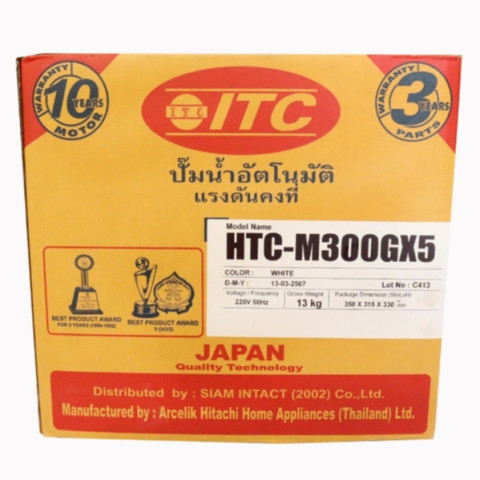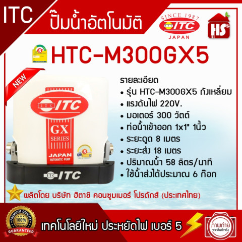 ปั๊มน้ำ ITC (ไอทีซี) รุ่น HTC-M300 GX5 ปั๊มน้ำอัตโนมัติระบบแรงดันคงที่ ขนาด 300 วัตต์ ช่วยให้น้ำไหลสม่ำเสมอ เปิดใช้งานได้พร้อมกันหลายจุด เหมาะสำหรับบ้านพักอาศัย ทาวน์โฮม หรืออาคารขนาดเล็กที่ต้องการแรงดันน้ำคงที่ ใช้งานสะดวก เปิด-ปิดอัตโนมัติตามการใช้น้ำ พร้อมความมั่นใจด้วย รับประกันมอเตอร์ 10 ปี