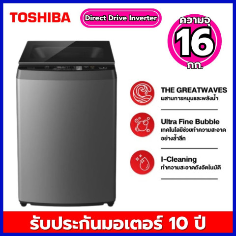 Toshiba เครื่องซักผ้าฝาบน 16 กก. Direct Drive Inverter รุ่น AW-DUN1700MT(SG) สีเทา มอบพลังซักสะอาดล้ำลึกแบบสบายแรง ด้วยเทคโนโลยีเอกสิทธิ์เฉพาะของ Toshiba ที่ช่วยให้ผ้าสะอาดขึ้น ประหยัดขึ้น และใช้งานง่ายขึ้นในทุกวัน เหมาะสำหรับครอบครัวที่ซักผ้าปริมาณมากหรือมีผ้าหนาอย่างผ้าห่ม ผ้านวม โดยยังคงทำงานเงียบด้วยมอเตอร์อินเวอร์เตอร์แบบต่อตรง หมดกังวลเรื่องสายพานและปัญหาหนูกัด