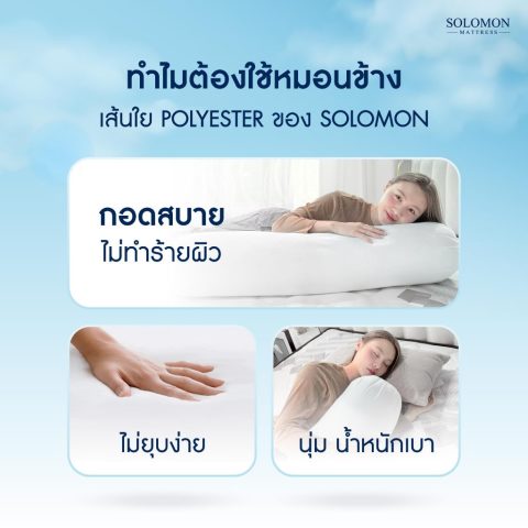 SOLOMON หมอนข้างใยโพลีเอสเตอร์ 100% (White) 1 ใบ หมอนข้างนุ่มแน่นกำลังดีสำหรับกอด นอนเล่น หรือหนุนขา ช่วยรองรับสรีระตั้งแต่ช่วงคอไปจนถึงลำตัว ลดความเมื่อยล้าในชีวิตประจำวัน ผลิตจากใยโพลีเอสเตอร์ 100% พร้อมผ้าหุ้มแบบ Allergy-Protection ช่วยป้องกันไรฝุ่นและลดโอกาสเกิดอาการภูมิแพ้ ดูแลทำความสะอาดง่าย ซักได้ทั้งมือและเครื่อง และหลังซักเส้นใยไม่จับตัวเป็นก้อน ใช้งานได้นานคุ้มค่า