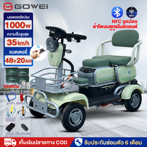 GOWEI รถไฟฟ้า 4 ล้อใหญ่ NFC รูดบัตร 48V 20AH (3 ที่นั่ง) ทางเลือกใหม่สำหรับการเดินทางในชีวิตประจำวัน ขับง่าย นั่งสบาย พื้นที่กว้าง รองรับผู้ใหญ่ได้จริง เหมาะทั้งขับไปตลาด รับ-ส่งคนในบ้าน หรือวิ่งระยะใกล้ๆ ในชุมชน พร้อมฟังก์ชันทันสมัยอย่าง NFC รูดบัตร และ รีโมทอัจฉริยะ เพิ่มความสะดวกและความปลอดภัยในการใช้งาน