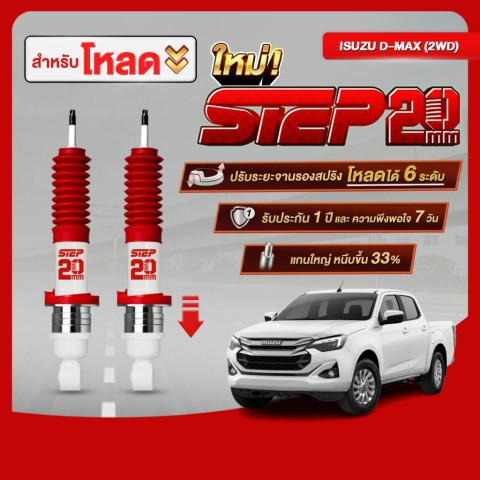 โช้คตาต้า STEP โหลด 20 MM คู่หน้า สำหรับ ISUZU DMAX 2WD (ตัวเตี้ยเท่านั้น) สายซิ่งโหลดเตี้ยที่อยาก “จูนฟีลขับ” และจัดฟิตเมนต์ให้พอดีซุ้ม ต้องมีชุดนี้! โช้คแกนใหญ่ 20 มม. ดีไซน์ Oversize พร้อมการปรับระดับความสูงได้ในตัวเดียว ช่วยให้รถนิ่ง คุมง่าย เกาะถนนมั่นใจขึ้นทั้งใช้งานประจำวันและขับเร็ว