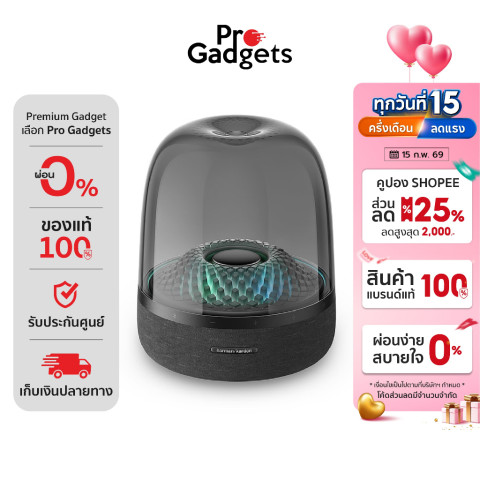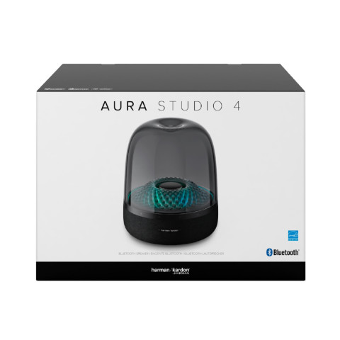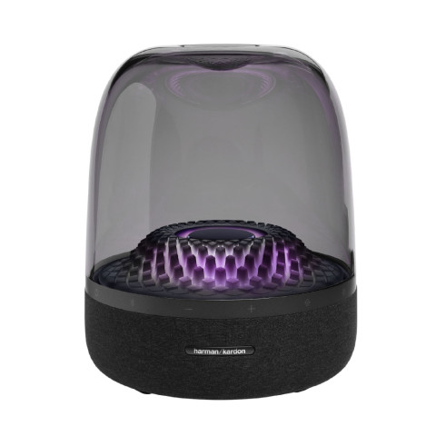 Harman/Kardon Aura Studio 4 Home Speaker Black ลำโพงตั้งโต๊ะดีไซน์โดมโปร่งใสสุดหรู ที่มอบประสบการณ์เสียงกระหึ่มรอบทิศทาง 360 องศา พร้อมแสงเอฟเฟกต์ Diamond เปลี่ยนบรรยากาศห้องให้พรีเมียมทันที เหมาะทั้งฟังเพลง ชิล ทำงาน หรือเป็นของแต่งบ้านที่โดดเด่นในทุกมุม