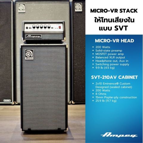 ตู้แอมป์เบส Ampeg MICRO SERIES [MICRO-VR/MICRO-CL] คือชุดแอมป์เบสขนาดกะทัดรัดที่ถ่ายทอดคาแรกเตอร์เสียง “หนา กลม อุ่น” สไตล์ตระกูล SVT® ได้อย่างโดดเด่น เหมาะทั้งซ้อมที่บ้าน อัดเสียงในสตูดิโอ ไปจนถึงงานเล่นสดขนาดเล็ก-กลาง ให้โทนพื้นฐานแน่น (rich fundamental) และเสียงที่พร้อมมิกซ์ (track-ready) ในแพ็กเกจที่พกพาง่ายและหน้าตาหล่อคลาสสิกสะดุดตา