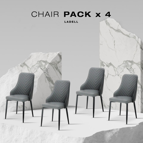 ชุดเก้าอี้ทานอาหาร 4 ตัว รุ่น LADELL หนังสังเคราะห์สีเทา