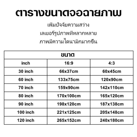 ขนาดหน้าจอ: 60 / 80 / 100 นิ้ว