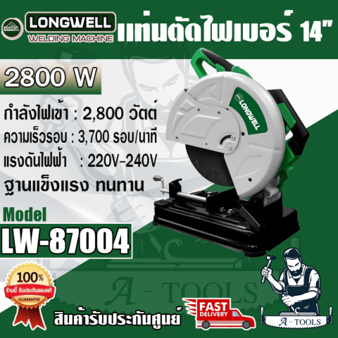 LONGWELL แท่นตัดเหล็ก 14 นิ้ว รุ่น LW-87004 แท่นตัดไฟเบอร์กำลังแรง 2800W สำหรับงานตัดเหล็ก/โลหะที่ต้องการความรวดเร็ว คมตัดนิ่ง และใช้งานได้ต่อเนื่อง เหมาะทั้งงานช่างทั่วไป งานติดตั้ง งานโรงงาน หรือช่างมืออาชีพที่ต้องการเครื่องตัดไฟเบอร์ขนาด 14" ที่ไว้ใจได้ พร้อมบริการ ส่งเร็ว ของแท้ 100%
