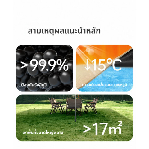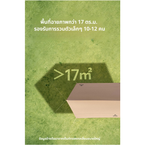 เหมาะสำหรับ ปิกนิกริมทะเล/สวนสาธารณะ แคมป์ปิ้งแบบครอบครัว ออกทริปเป็นกลุ่ม หรือใช้เป็นร่มเงาสำหรับโซนทำอาหารและพื้นที่นั่งเล่นในแคมป์