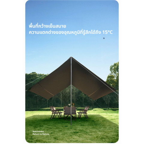 Naturehike Sun Shelter Canopy 150D Oxford สีดำเคลือบกันน้ำ UV Protection ทางเลือกสำหรับสายปิกนิกและแคมป์ปิ้งที่ต้องการพื้นที่ร่มเงากว้าง โปร่งโล่ง ระบายอากาศดี พร้อมผ้า Oxford 150D เคลือบสีดำช่วยเสริมการกันแดด และเคลือบกันน้ำเพื่อรับมือสภาพอากาศที่เปลี่ยนแปลง เหมาะทั้งกางเป็นจุดพักผ่อนกลางแจ้ง โซนครัวแคมป์ หรือพื้นที่รวมตัวของทีม