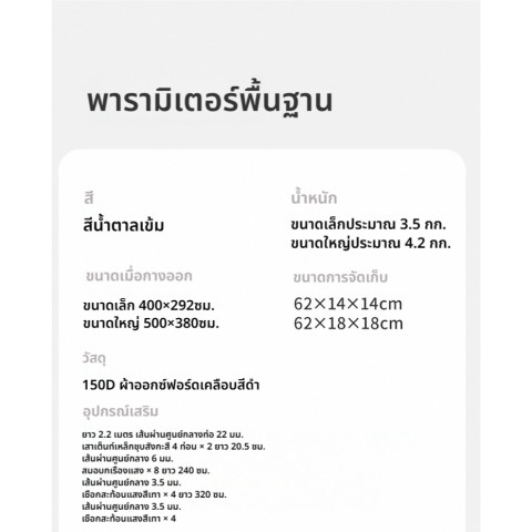 ขนาดกางออก (ตัวเลือก): 550×465 ซม. หรือ 680×575 ซม.