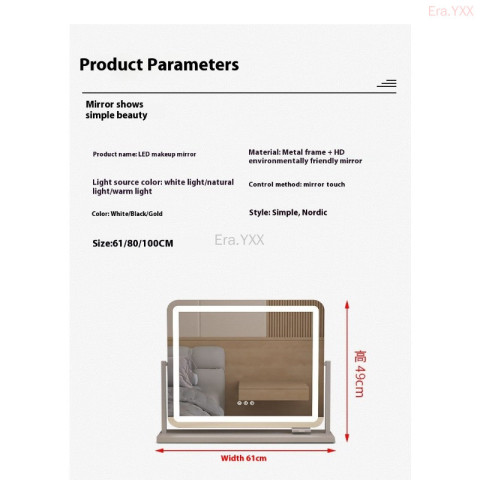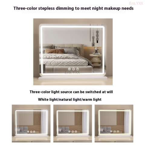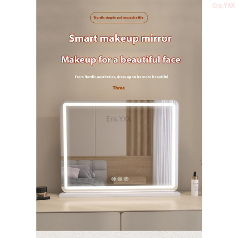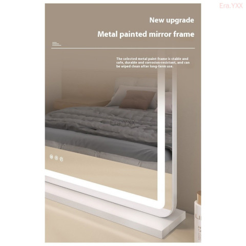 กระจกแต่งหน้าอัจฉริยะพร้อมไฟ LED 3 โทน ดีไซน์ยุโรปแบบเดสก์ท็อปทรงสี่เหลี่ยมผืนผ้ามุมโค้งมน ให้ภาพสะท้อนคมชัด พร้อมไฟเติมแสงที่ปรับได้ทั้งโทนและความสว่าง เหมาะสำหรับแต่งหน้า ทำผม ดูแลผิว หรือถ่ายคอนเทนต์ให้ผิวดูสวยเป็นธรรมชาติในทุกสภาพแสง