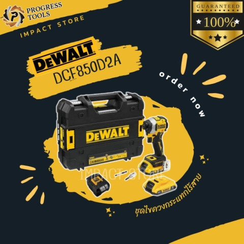 DEWALT ไขควงกระแทกไร้สาย รุ่น DCF850D2A (20V) ครบชุด ตัวจบงานขัน-คลายสำหรับช่างมืออาชีพและสาย DIY ที่ต้องการพลัง แรงบิด และความคล่องตัวในเครื่องเดียว ด้วยดีไซน์กะทัดรัด น้ำหนักเบาเพียง 0.95 กก. ใช้งานในพื้นที่แคบได้สะดวก พร้อม 3 โหมดการทำงาน คุมแรงและความเร็วให้เหมาะกับหน้างาน ลดโอกาสหัวน็อตรูดหรือชิ้นงานเสียหาย