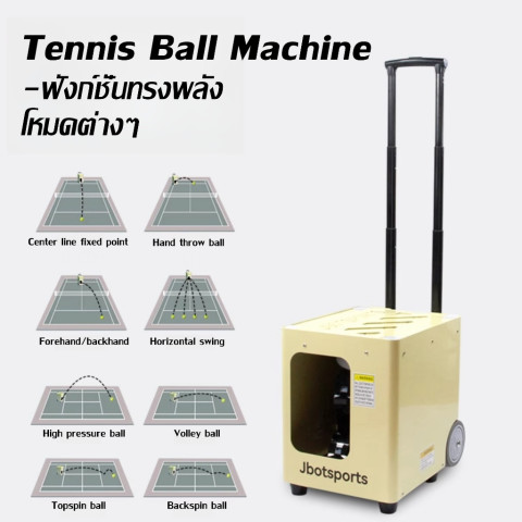Jbotsports Tennis Ball Machine เครื่องยิงลูกเทนนิส รุ่น JT-03 (อัปเกรด) รุ่นยอดนิยมที่พัฒนาให้ดียิ่งขึ้น พร้อม ควบคุมผ่านแอป (APP) และรีโมท เพิ่มความสะดวกในการตั้งค่าการฝึกซ้อมได้แบบมืออาชีพในทุกวัน เหมาะสำหรับผู้เล่นทุกระดับที่ต้องการซ้อมเดี่ยวให้เข้มข้น ทั้งโฟร์แฮนด์ แบ็คแฮนด์ วอลเลย์ และลูกลอบ โดยไม่ต้องพึ่งคู่ซ้อม