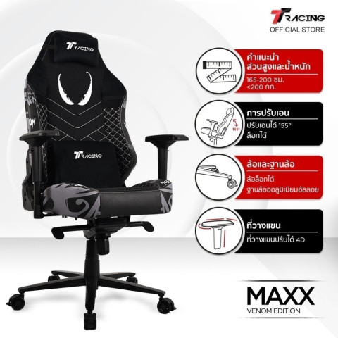 เลือก TTRacing Maxx Gaming Chair - Marvel Venom (Shadow) เพื่อความเท่ที่มีเอกลักษณ์แบบเวน่อม และความสบายที่พร้อมลุยทุกชั่วโมงของคุณ