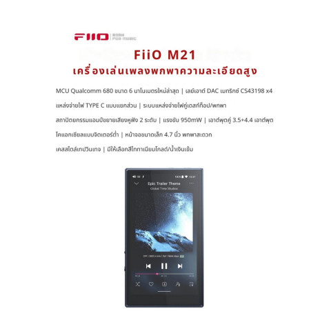 [ประกันศูนย์ไทย] FiiO M21 Hi-Res Music Player เครื่องเล่นเพลงพกพาความละเอียดสูงรุ่นใหม่จาก FiiO ที่พัฒนาต่อยอดจาก M11S ให้คุณสัมผัสรายละเอียดเสียงที่คมชัด โปร่งใส และทรงพลัง รองรับมาตรฐาน Dual Hi-Res เหมาะทั้งการฟังเพลงจริงจังและการพกพาใช้งานทุกวัน พร้อม ประกันศูนย์ไทย 1 ปี มั่นใจได้ทั้งคุณภาพและบริการหลังการขาย