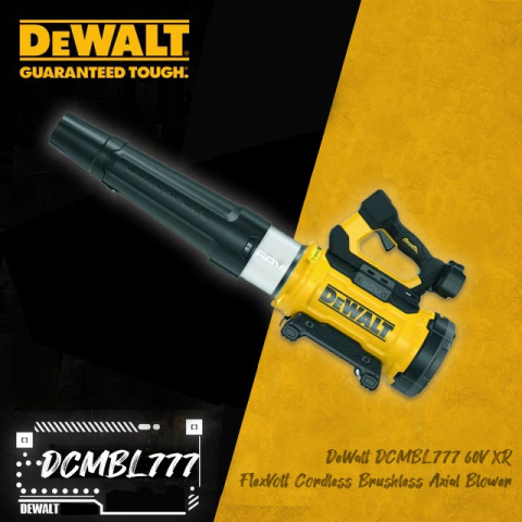 Dewalt DCBL777 60V เป่าลม/เป่าใบไม้ ไร้สาย XR FLEXVOLT Brushless Axial Blower (DCBL777B) + ชุดแบต FLEXVOLT 9.0Ah คือเครื่องเป่าลมกำลังสูงสำหรับงานสวนและงานทำความสะอาดพื้นที่ภายนอกที่ต้องการความคล่องตัวแบบไร้สาย ใช้งานสะดวก ไม่ต้องพึ่งปลั๊กไฟ มาพร้อมมอเตอร์ Brushless ที่ทนทาน ให้แรงลมสม่ำเสมอ เหมาะสำหรับเป่าใบไม้ เศษหญ้า ฝุ่นผง และเศษวัสดุเบาๆ บนพื้นทางเดิน ลานบ้าน หรือพื้นที่งานช่าง