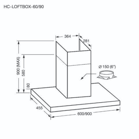 รายละเอียดเครื่องดูดควันกระโจมติดผนัง รุ่น HC-LOFTBOX-60 (กว้าง 60 ซม.)