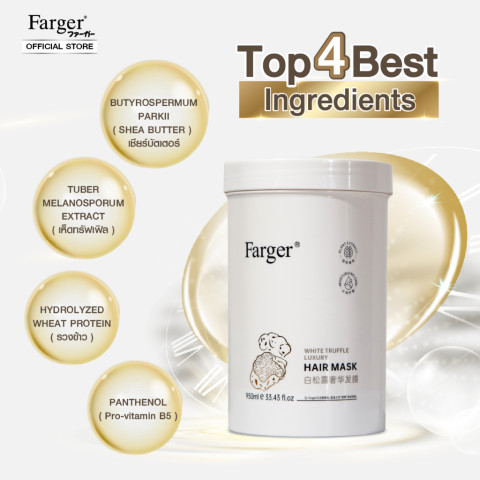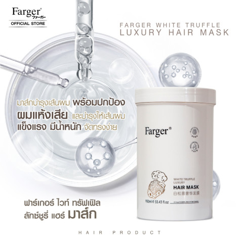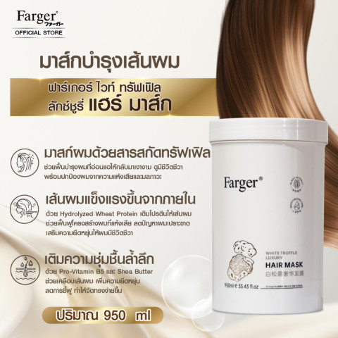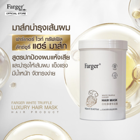 ทรีทเม้นท์ถัง [สินค้านำเข้า] Farger ฟาร์เกอร์ ไวท์ ทรัฟเฟิล ลักซ์ชูรี่ แฮร์ มาส์ก 950 มล. มาส์กบำรุงผมเข้มข้นสำหรับผมแห้งเสีย ชี้ฟู และแตกปลาย ช่วยฟื้นคืนความนุ่มลื่น เงางาม ดูสุขภาพดีอย่างเป็นธรรมชาติ เหมาะสำหรับผู้ที่ทำสี ดัด ยืด หรือใช้ความร้อนกับเส้นผมเป็นประจำ