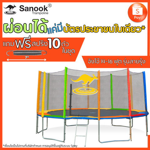 SanookTrampoline สปริงบอร์ดจิงโจ้ ขนาด 16 ฟุต (4.80 ม.) สีรุ้ง แทรมโพลีนขนาดใหญ่ ดีไซน์สีสันสดใส โดดสนุก นุ่มเด้งด้วยสปริงยาว 7 นิ้ว รองรับได้ทั้งเด็กและผู้ใหญ่ เหมาะมากสำหรับบ้าน สวน หรือใช้จัดกิจกรรม/ออกงานต่าง ๆ มาพร้อมชุดรั้วตาข่ายความปลอดภัย และแถมฟรีสมอปักกันลม เพิ่มความมั่นคงในการใช้งานทุกสภาพพื้นที่