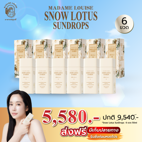 Madame louise Snow Lotus Sundrops 50 ml สกินแคร์เซรั่มบำรุงผิวสูตรพรีเมียมที่ช่วยเติมความชุ่มชื้น ฟื้นบำรุงผิวให้ดูอิ่มฟู และเสริมความกระจ่างใสอย่างเป็นธรรมชาติ ด้วยเนื้อสัมผัสแบบ “ซันดรอป” บางเบา ซึมไว ไม่เหนียวเหนอะหนะ เหมาะสำหรับใช้เป็นขั้นตอนบำรุงทั้งเช้าและก่อนนอน เพื่อผิวดูเรียบเนียน สุขภาพดี พร้อมรับการแต่งหน้าในทุกวัน